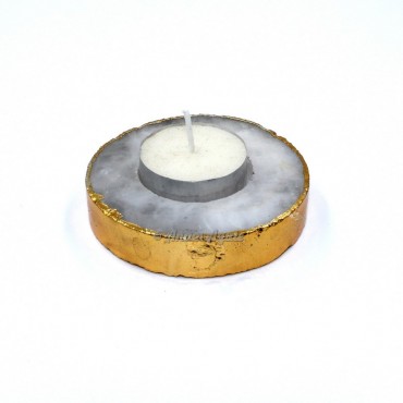 Gold Electroplated Grey Quartz Agate Clock with Stand