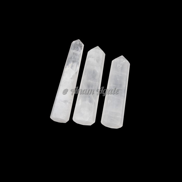 Selenite Cube Shape with Blue Evil Eye Hanger
