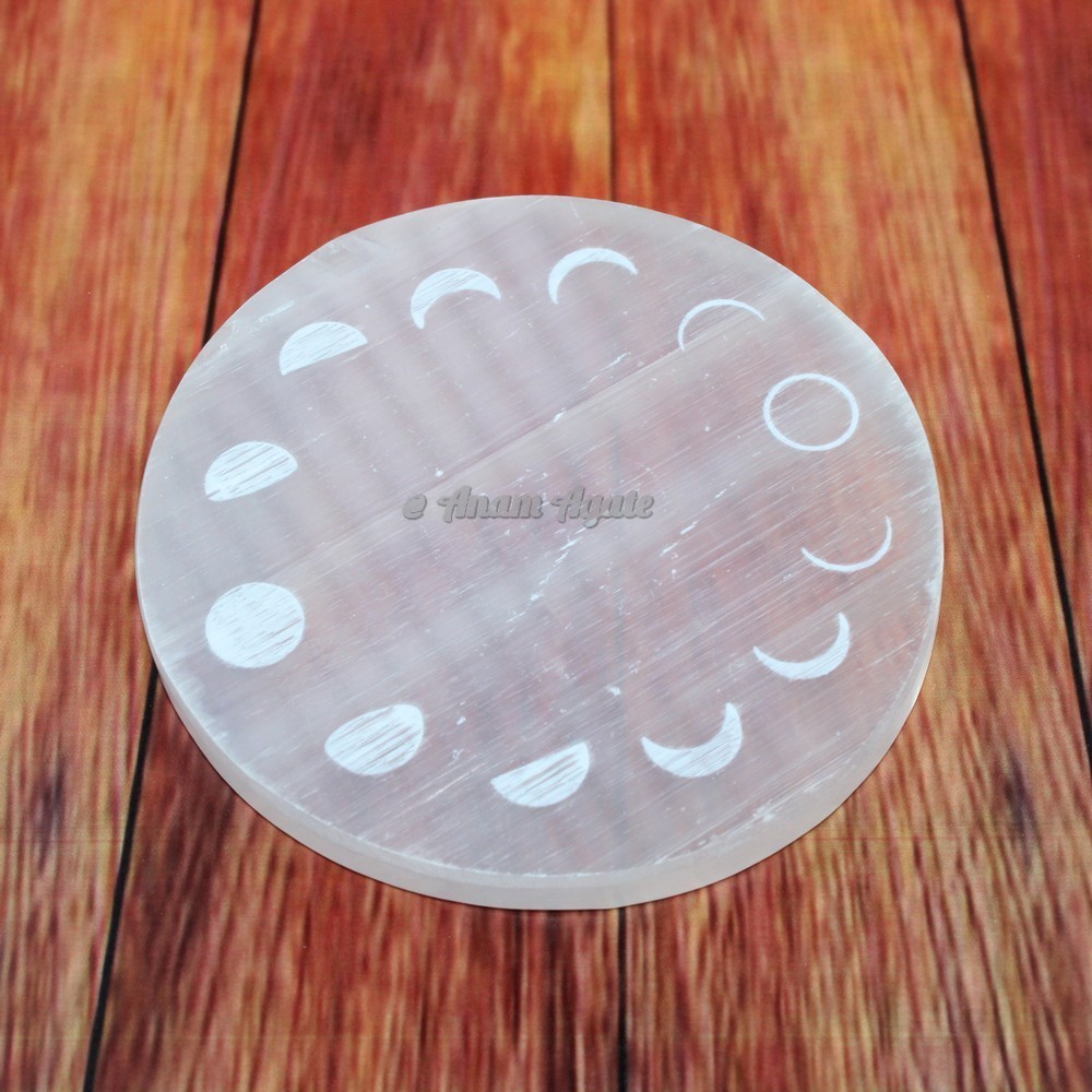 Printed Moon Engraved Rainbow Selenite Coaster Charging Plate
