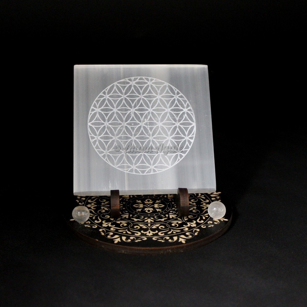 Engraved Flower of Life Selenite Plate for Reiki Healing