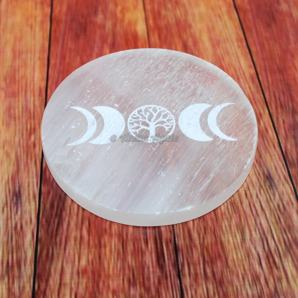 Engraved Moon Phases Selenite Charging Plate