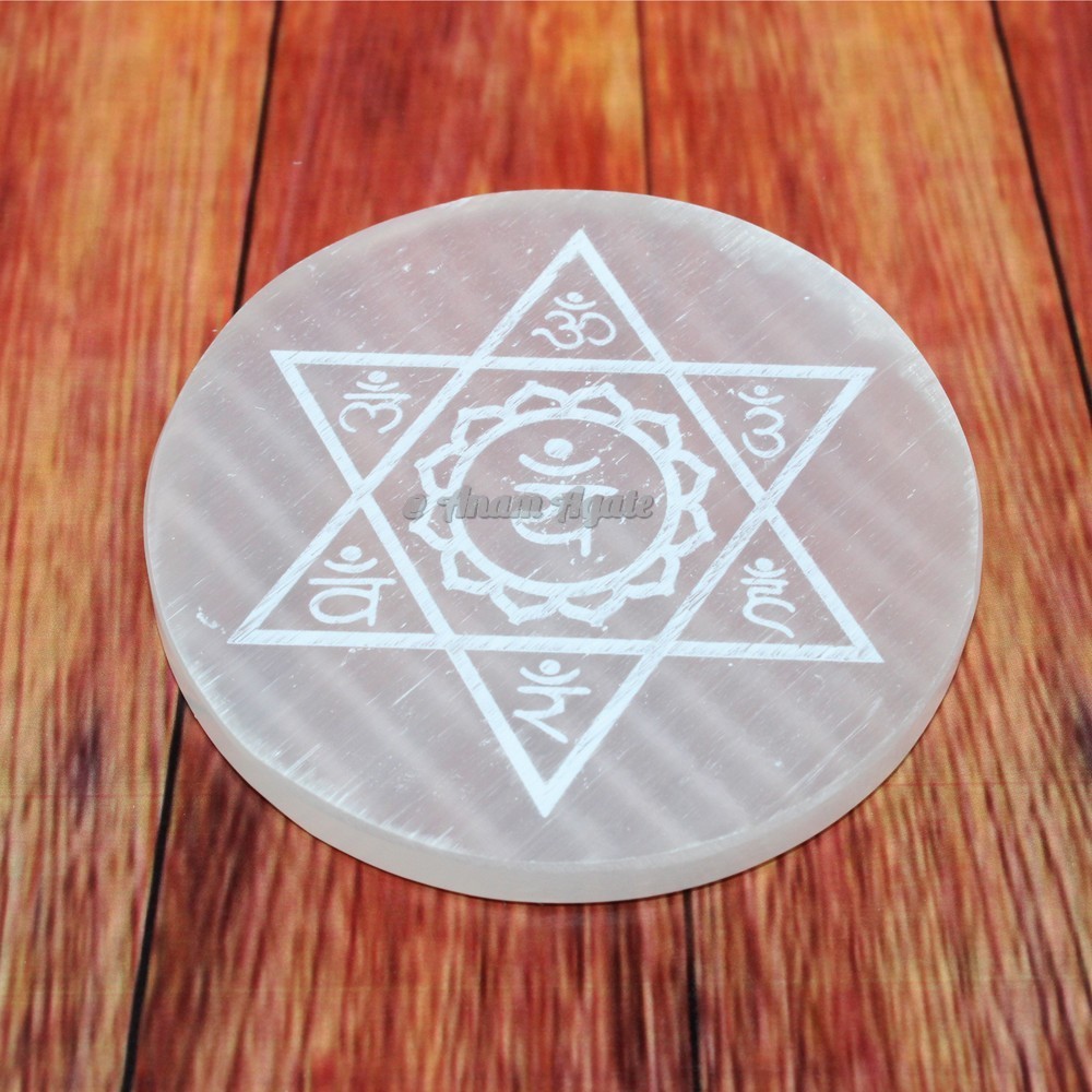 Engraved Flower of Life Selenite Charging Plate Coaster