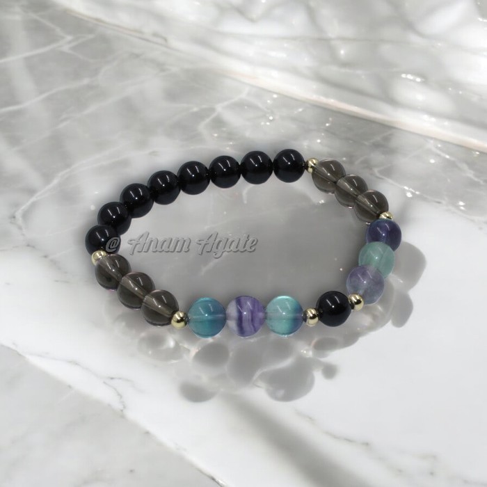 Fluorite, Smokey Quartz and Black Tourmaline Bracelet