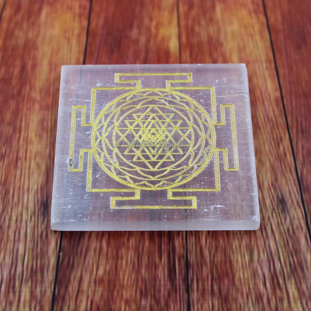 Gold Plated Acrylic Yantra Selenite Charging Plate Coaster