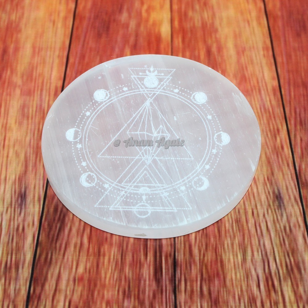 Printed Engraved Metatron with Yantra Rainbow Selenite Charging Plate Selenite Coaster