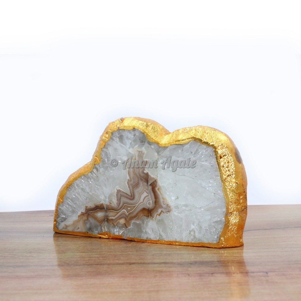 Yellow Agate Gold Electroplated Clock with Stand