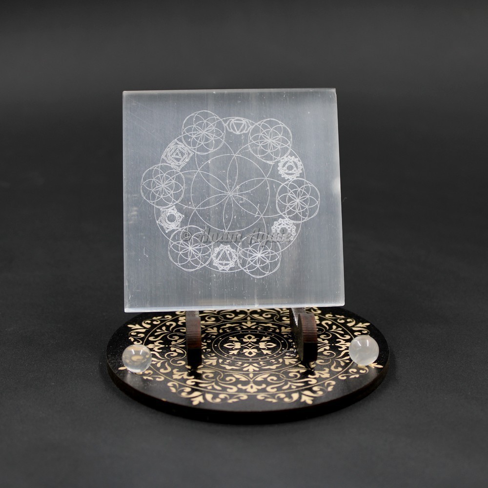 Engraved Flower of Life Selenite Plate for Reiki Healing