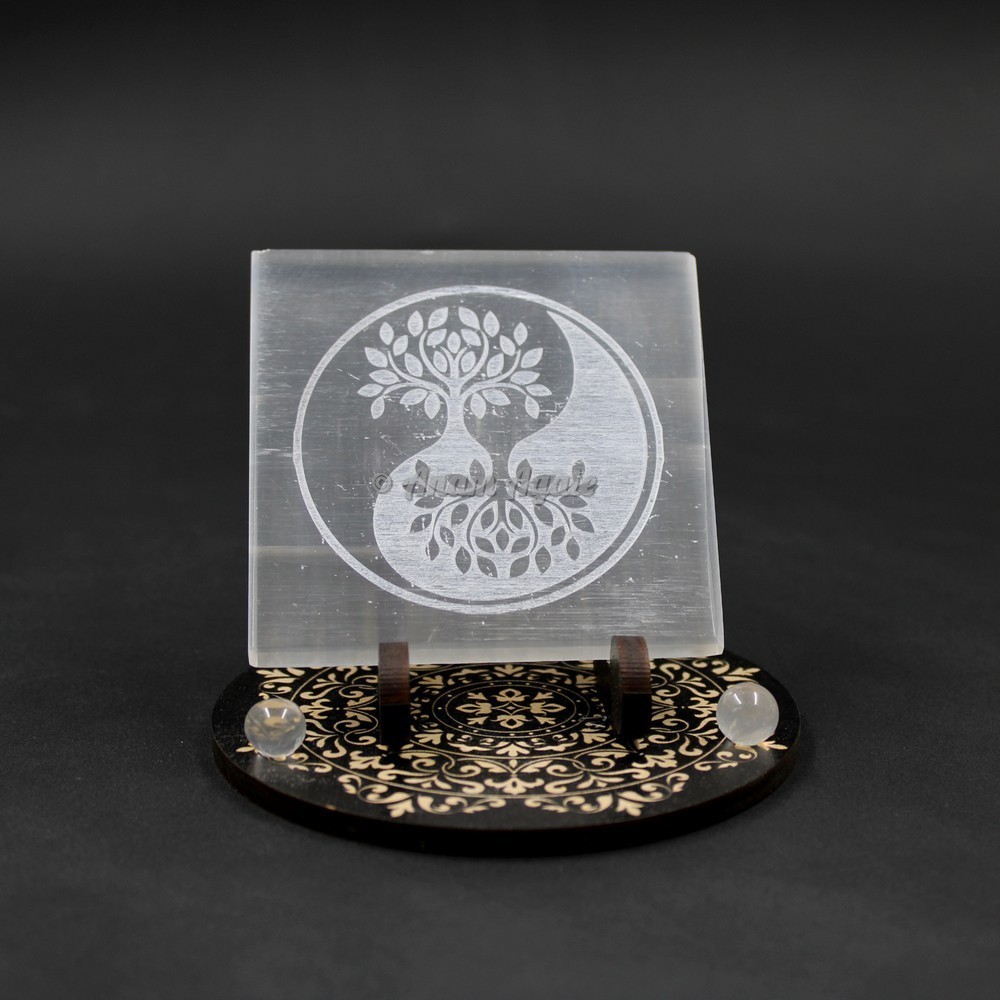 Selenite Tree Symbol Charging Plate for Reiki Healing