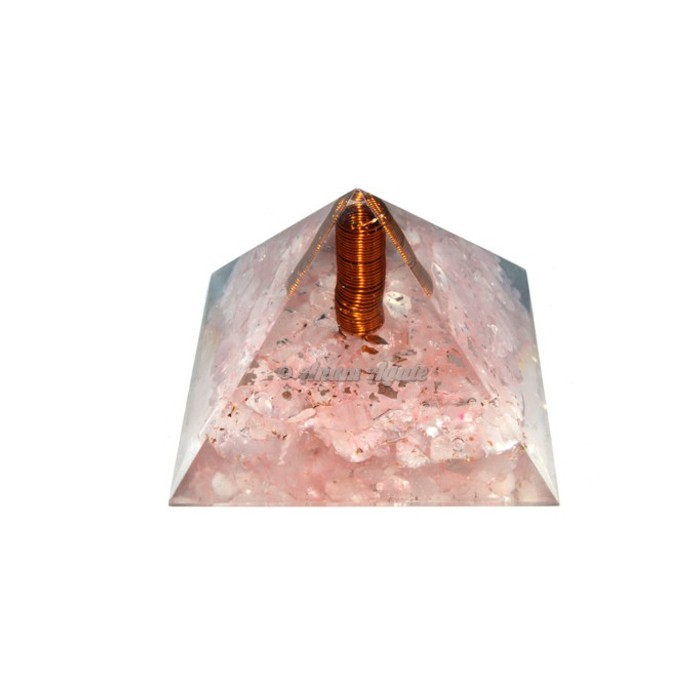 Shop for Rose Quartz Orgonite Pyramid today from Anam Agate. New Age movements and groups study the Flower of Life and see it as a form of sacred geometry that can be used to achieve enlightenment and understand the deeper spiritual meaning in life. They use the symbol to create new meditation practices and beliefs from it. Light red, or Pink Rose Quartz brings the energy rays of determination, commitment, and caring. Its soothing color calms feelings of anger or resentment, and can aid efforts to meditate and reflect. Pink is the color of new love, new romance and new relationships. Physiologically, the rose quartz stone is considered a powerful healing stone. It has been suggested it can improve circulation, boost neuron connectivity, and even accelerate healing. Orgonite pyramid helps to filter and balance energy fields in our environment and can aid in strengthening your energy body by converting low frequency energy into a higher frequency that is more beneficial for life forms including yourself, pets and plants. Orgone pyramids are made of a mix of organic (resin) and non-organic materials (metal shavings) that have the property of moving the orgone energy back and forth and act as a cleansing of the stagnant, negative energies.