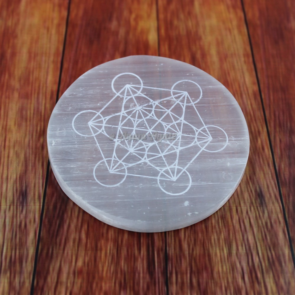 Printed Engraved Metatron with Yantra Rainbow Selenite Charging Plate Selenite Coaster