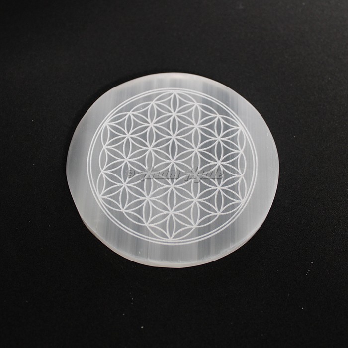 Engraved Flower of Life Selenite Plate for Reiki Healing