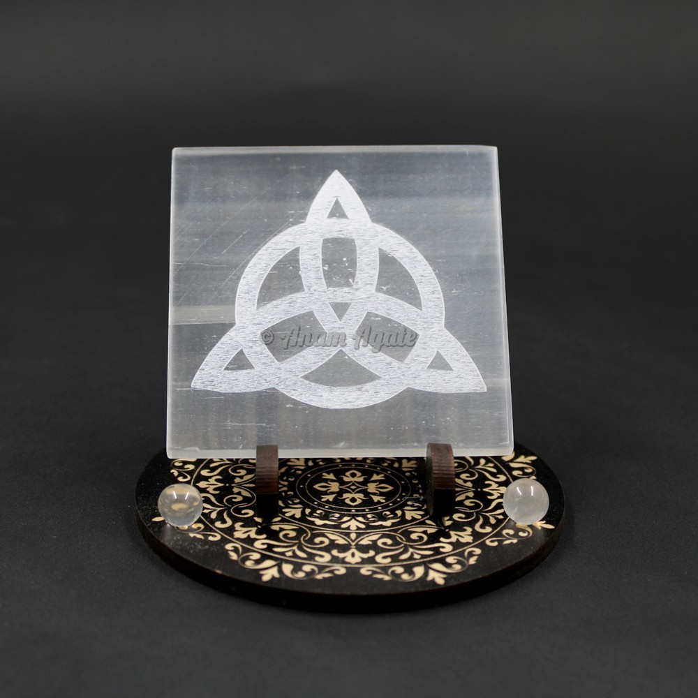 Engraved Hamsa Evil Eye Charging Selenite Plate Coaster