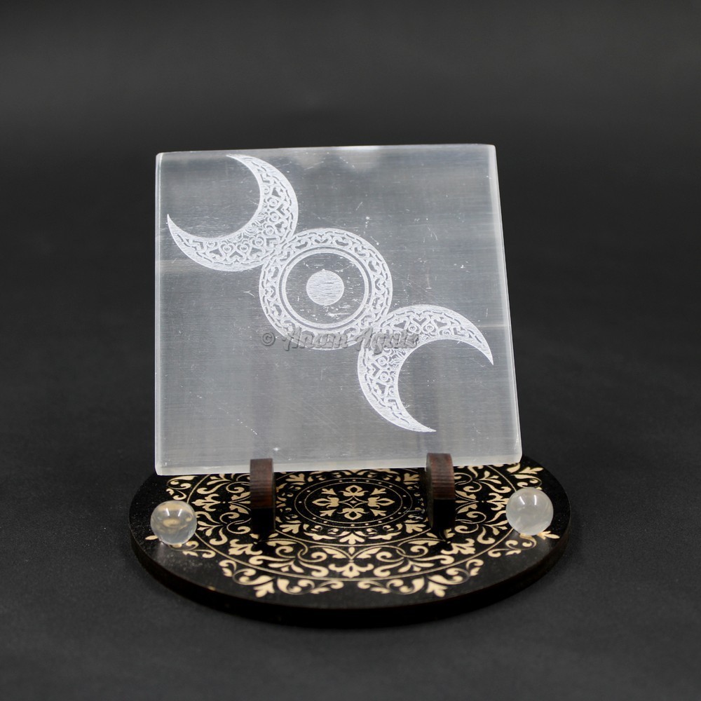 Selenite Moon Phases Engraved Charging Plate