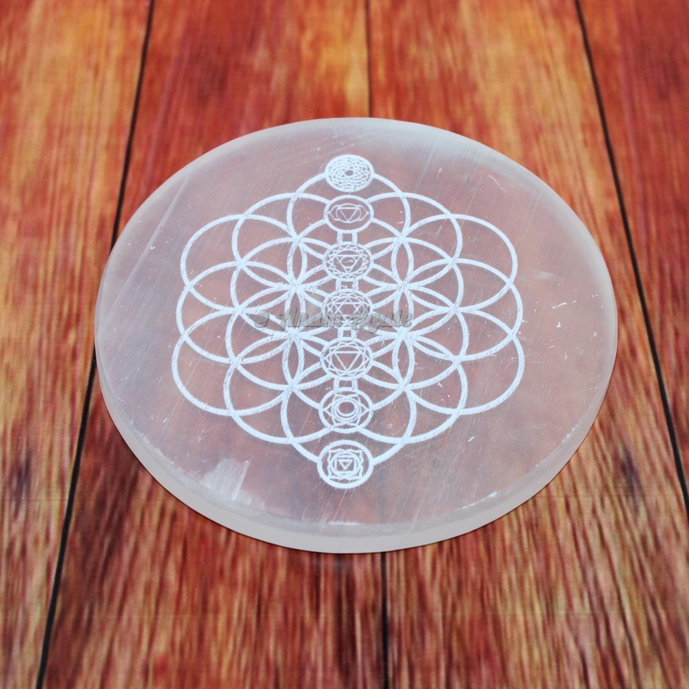 Selenite Seed Of Life Engraved Charging Plate