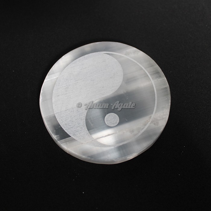 Engraved Flower of Life Selenite Charging Plate Coaster