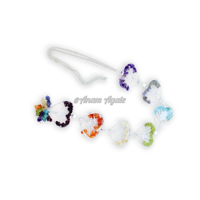 Seven Chakra Tumbled with Heart Shaped Tree of Life Hanger