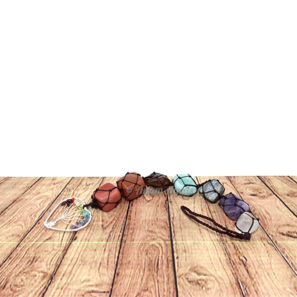 Seven Chakra Tumbled with Heart Shaped Tree of Life Hanger