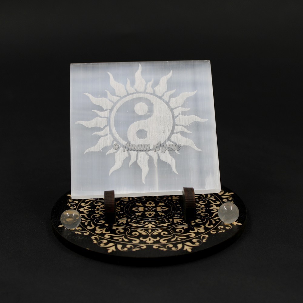 Acrylic Ying Yang Flower Of Life Selenite Charging Plate Coaster