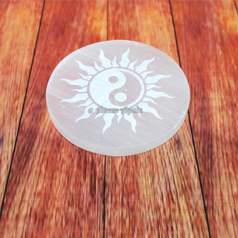Healing Seven Chakra Symbol Selenite Charging Plate