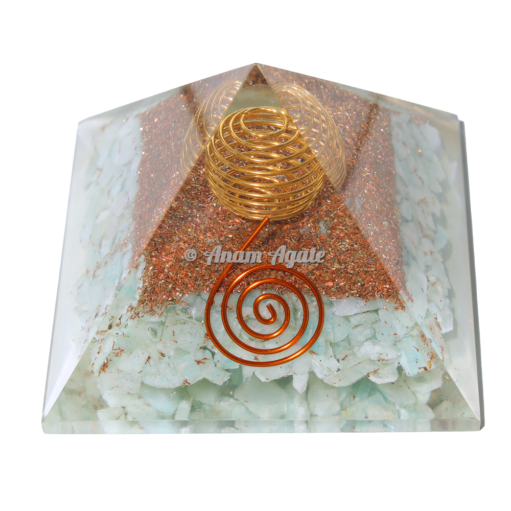 Get the best deal on Amazonite Orgonite Pyramid. Amazonite is said to have a soothing effect on the nervous system. Since the nervous system controls our emotions a great deal, this stone is said to soothe tense and aggravated situations and to enhance love. Since this stone is associated with the throat and heart, it is best when worn as a necklace near these areas. Amazonite has healing powers to help with physical ailments, emotional issues, and in Energy Healing and chakra balancing. Amazonite crystal therapies are primarily associated with filtering out stresses, healing traumas, and soothing energies in the home and workplace. Orgonite?the pyramids?emit harmonic and uplifting frequencies as well. It isn`t like a high and low temperature that meets in the middle. High frequencies actually lift the lower frequencies up without lowering at all. Orgone pyramid helps to neutralize electronic smog (EMF) from cell phones, cell phone towers, wi-fi, computers and electronic devices that you expose yourself to on a daily basis. The interaction of organic resin and inorganic metal creates orgone.