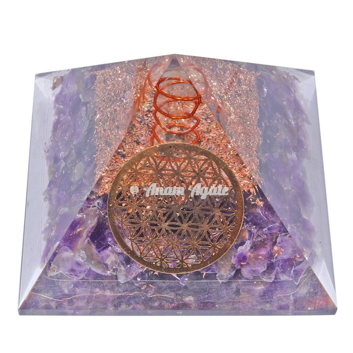 Anam Agate have unique collection of All Energy Healing Crystals Orgone Pyramids. Buy online Amethyst With Flower Of Life Orgonite Pyramid