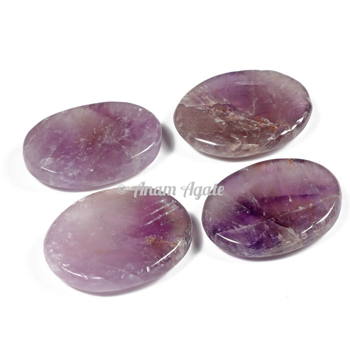 Amethyst Worry Stone is a illuminates a soft, violet color stone. The oval shape is becoming quite popular in that it is easy to hold without tiring the hand muscles. The Amethyst is a spiritual gem steeped in lore and legend. Amethyst is a wonderful talisman for use in the creative arts. Amethyst is also a well known healer that has profound effects in balancing the crown chakra. Order online for Amethyst Worry Stone at affordable prices.