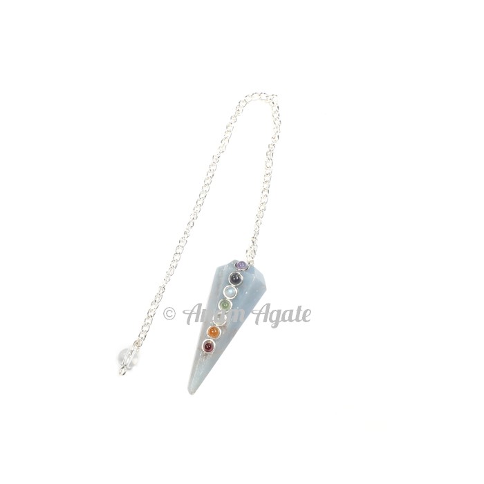 Get the best and unique Angelite Chakra 6faceted Pendulums at Lowest price only at Anam agate. This pendulum is recuperating properties help to uplift your mindfulness and offer security to your whole body. This is available in best Quality and bulk quantity. Place the order as soon as possible.