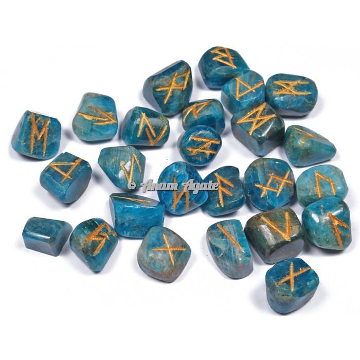Anam Agate offers the wide range of Apatite Rune Set at Wholesale price. It clears confusion and frustration, reducing irritability and awakening the inner self. Apatite expands knowledge and truth and eases sorrow, apathy, and anger. Apatite aids in the absorption of calcium, helping cartilage, bones and teeth; healing bones and encouraging the formation of new cells. Runes are the letters in a set of related alphabets known as runic alphabets, which were used to write various Germanic languages before the adoption of the Latin alphabet and for specialised purposes thereafter. Order online today.