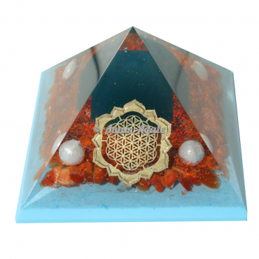 Carnelian With Crystal Pencil Orgonite Pyramid
