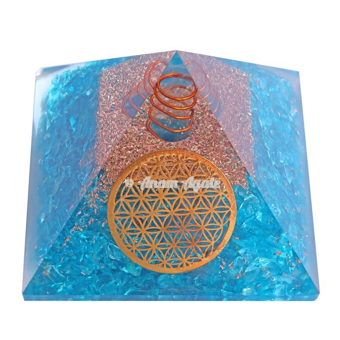 Aquamarine With Flower Of Life Orgonite Pyramid