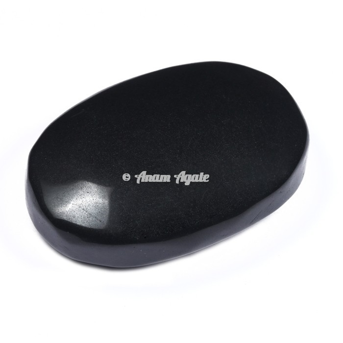 Get Black Agate Palm Stone at Anam Agate from India. Black Agate, like all black stones, is a grounding and protective crystal. It gives a calming peace that helps those during a period of bereavement. Black Agate gives inner strength to move on and is also very helpful in keeping the peace in stressful households. Palm stones are polished oval stones that can be used for crystal healing, meditation and many other esoteric healing practices. The reason that palm stones are called `palm stones` is very simple: they fit perfectly into the palm of your hand. Order online for Black Agate Palm Stone now.