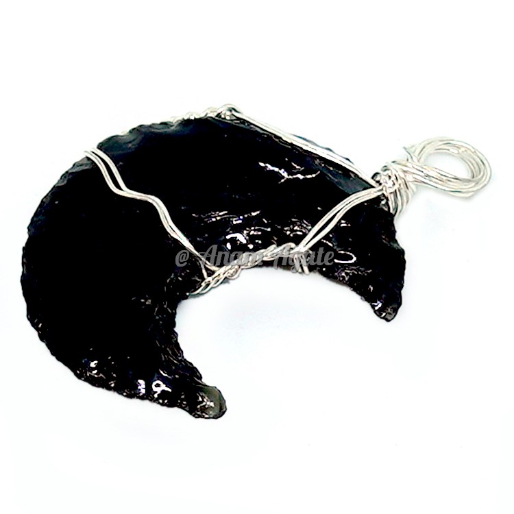 An exclusive deal in here on purchase of Black Obsidian Moon Wire Wrapped Healing Pendant B from Anam Agate. Black Obsidian Stone is a powerful cleanser of psychic smog created within your aura, and is a strong psychic protection stone. This stone has powerful metaphysical properties that will help to shield you against negativity. The energy of these stones may stimulate the gift of prophesy and may boost precognition. A strongly protective stone, it forms a shield against negativity. It blocks psychic attack and absorbs negative energies from the environment. Obsidian draws out mental stress and tension. Obsidian dissolves emotional blockages and ancient traumas. Pendant, in jewelry, ornament suspended from a bracelet, earring, or, especially, a necklace. Pendants are derived from the primitive practice of wearing amulets or talismans around the neck. The practice dates from the Stone Age, when pendants consisted of such objects as teeth, stones, and shells. A gemstone worn as a pendant always gives better result than a ring.