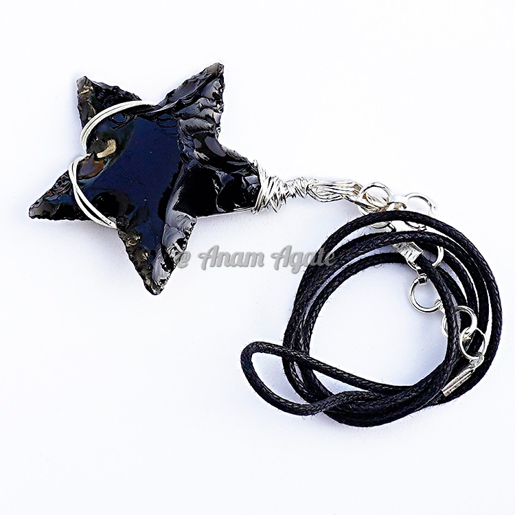 An exclusive collection of Black Obsidian Star Wire Wrapped Healing Pendant is here at Anam Agate. Black Obsidian Stone is a powerful cleanser of psychic smog created within your aura, and is a strong psychic protection stone. This stone has powerful metaphysical properties that will help to shield you against negativity. The energy of these stones may stimulate the gift of prophesy and may boost precognition. A strongly protective stone, it forms a shield against negativity. It blocks psychic attack and absorbs negative energies from the environment. Obsidian draws out mental stress and tension. Obsidian dissolves emotional blockages and ancient traumas. Pendant, in jewelry, ornament suspended from a bracelet, earring, or, especially, a necklace. Pendants are derived from the primitive practice of wearing amulets or talismans around the neck. The practice dates from the Stone Age, when pendants consisted of such objects as teeth, stones, and shells. A gemstone worn as a pendant always gives better result than a ring.