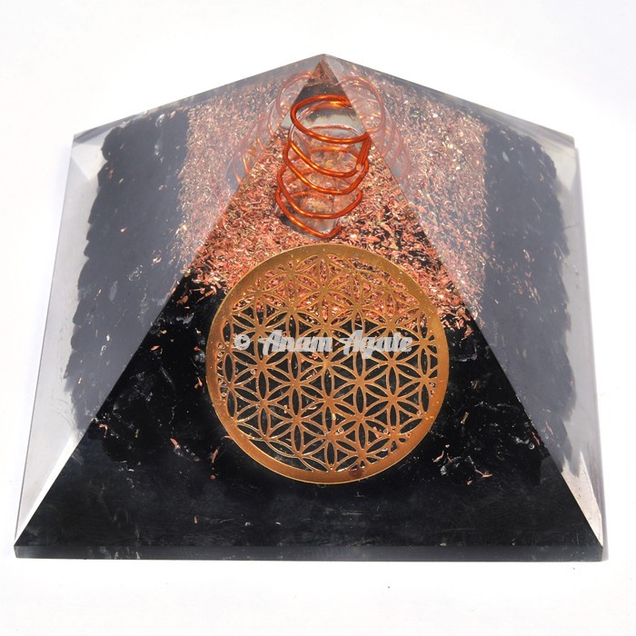 Anam Agate have unique collection of All Energy Healing Crystals Orgone Pyramids. Buy online Black Tourmaline With Flower Of Life Orgonite Pyramid
