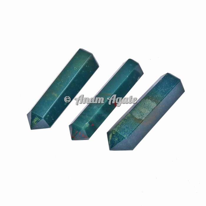 Shop online for Blood Stone Pencil Points at affordable price. The bloodstone also has grounding and purifying properties. Because of its ability to ward off negative energy and purify and cleanse the energy around it, the bloodstone is considered very protective. It can strengthen the immune system, help invigorate the blood, and energize one`s life. Bloodstone is a variety of chalcedony, which is crypto crystalline quartz. When it is green, the color comes from chlorite particles, dotted with bright, distinctive red spots of iron oxide that resemble blood, hence its name. The stone is a symbol of justice.