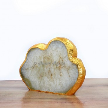 Cloud Shaped Yellow Agate Natural Gold Electroplated Coasters