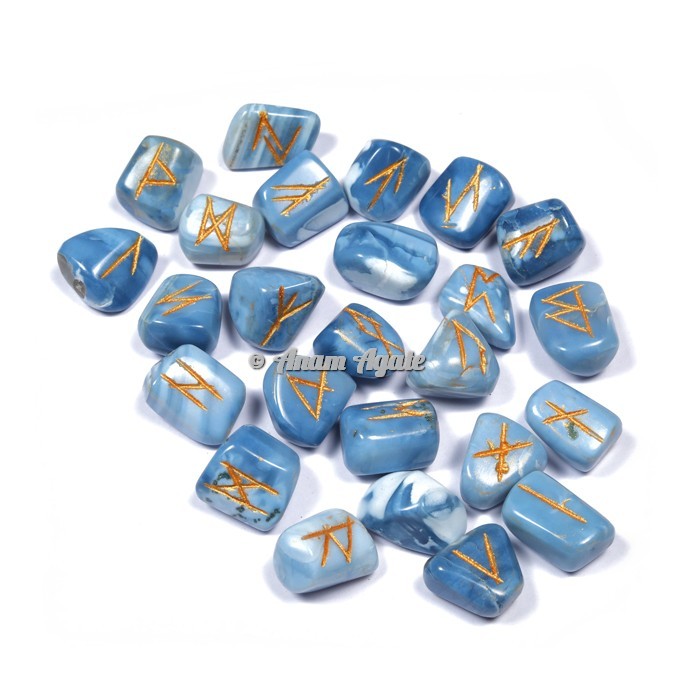 Attractive collection of Blue Opal Rune Set at Lowest Price. Blue Opal is believed to increase self-confidence. The gemstone can help the trauma as a source of inferiority complex. By unleashing your inner darkness, the gemstone can improve energy flow in you. Carry this Blue Opal stone when you want to embrace yourself or release the self-hatred. It is a seductive stone that intensifies emotional states and releases inhibitions. It can also act as an emotional stabilizer. Runes are the letters in a set of related alphabets known as runic alphabets, which were used to write various Germanic languages before the adoption of the Latin alphabet and for specialised purposes thereafter. Order online today.