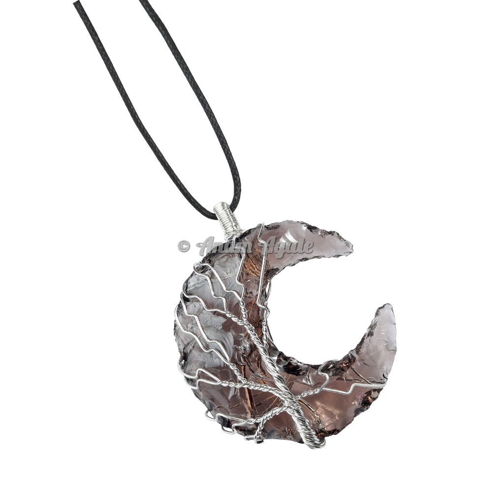 Best collection of Brown Glass Moon Tree Of Life Wire Wrapped Healing Pendant is here at Anam Agate. Brown glass moonstone cultivates compassion and empathy. It helps us to tap into our intuition and enhances psychic abilities and clairvoyance. The creative and intuitive power of feminine energy is activated by the moonstone. The serene and tranquil energy of the moonstone also invites creativity, healing and motherly protection. The Tree of Life symbol represents our personal development, uniqueness and individual beauty. Just as the branches of a tree strengthen and grow upwards to the sky, we too grow stronger, striving for greater knowledge, wisdom and new experiences as we move through life. Pendant, in jewelry, ornament suspended from a bracelet, earring, or, especially, a necklace. Pendants are derived from the primitive practice of wearing amulets or talismans around the neck. The practice dates from the Stone Age, when pendants consisted of such objects as teeth, stones, and shells. A gemstone worn as a pendant always gives better result than a ring. Place an order now at Anam Agate.