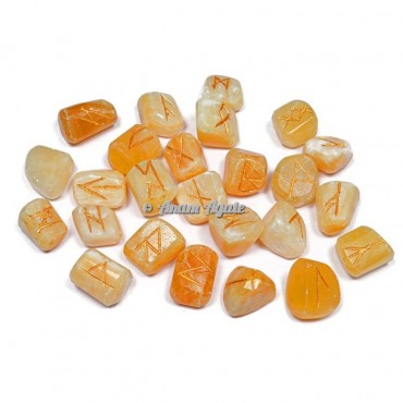 Anam Agate offers the huge collection of Calcite Orange Rune Set at Lowest Price. Orange Calcite helps integrate the spiritual realm with the physical body, enhances creativity, and is helpful with emotional issues. Use Orange Calcite to energize and cleanse the Root and Sacral Chakras and to bring positive energy into the areas of the will and sexuality. Runes are the letters in a set of related alphabets known as runic alphabets, which were used to write various Germanic languages before the adoption of the Latin alphabet and for specialised purposes thereafter. Place the order and get the best Calcite Orange Rune Set as soon as possible.