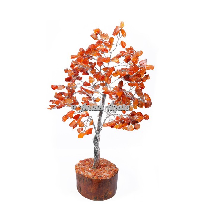 Here is the wide range of Carnelian 300 Chips Silver Wire Tree at Affordable Price only at Anam Agate. Carnelian is considered to be one of the most treasured amulets. The high quality brownish-red and deep orange natural gemstones and chips are perfectly embedded in the form of flowers that are set by the silver wire branches. The pedestal is covered with the carnelian chips. Carnelian is considered a grounding and energising stone. It is said to bestow courage and passion, boosting self-esteem and the libido. It makes for a great gift. The sizes of the tree may vary from 7-8 Inch. Order online today as soon as possible.