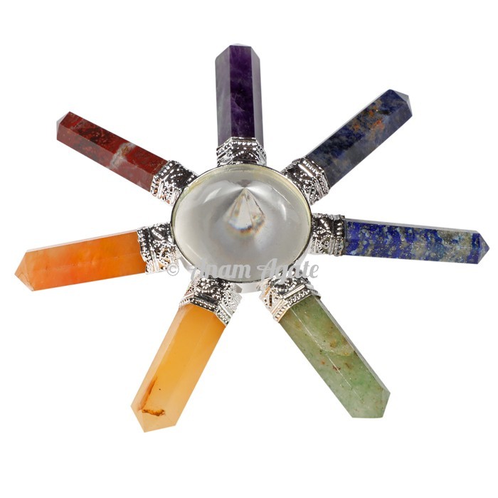 Chakra Healing Generator is a very beautiful piece that can be given as a gift to someone. The cone in centre of this piece supports the shining Star. The Seven pencils are made from different stones representing seven body chakras. Can you even imagine the power and intensity of the energy that is generated by chakra energy generator? Buy Chakra Energy Healing Generator of 7 side from Anam Agate and test yourself.