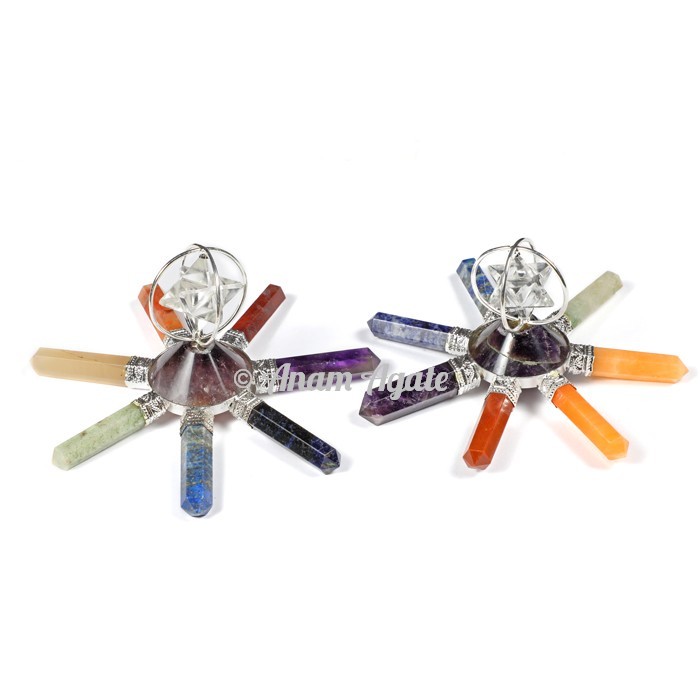 Chakra Healing Generator with Merkaba Star is a very beautiful piece that can be given as a gift to someone. The cone in centre of this piece supports the shining Markaba Star. The seven pencils are made from different stones representing seven body chakras. Can you even imagine the power and intensity of the energy that is generated by chakra energy generator, with markaba star? Buy one from Anam Agate and test yourself.