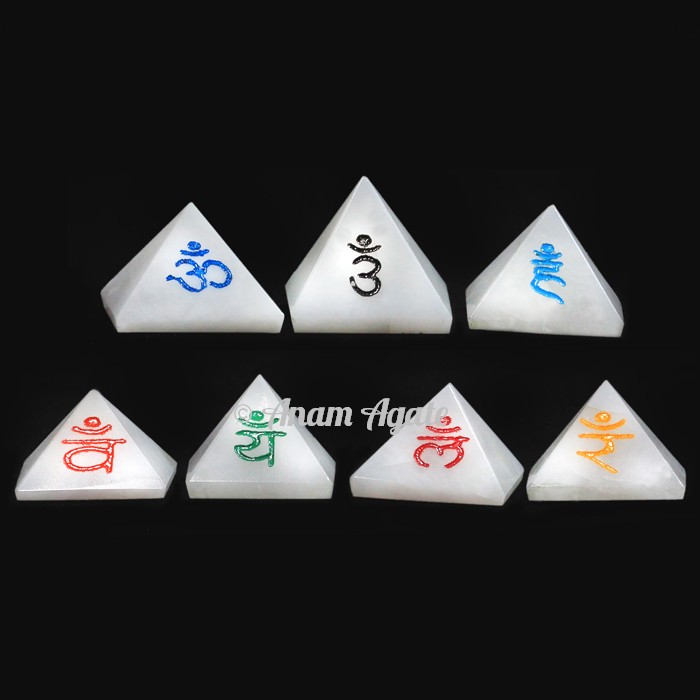 Chakra Sanskrit Engraved Pyramid Set – Traditional Chakra Healing with Sacred Sanskrit Engravings