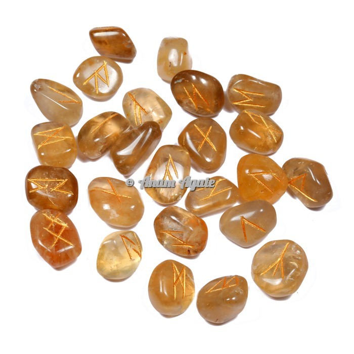 Get the best collection of Citrine Rune Set at Wholesale Price. Citrine stone promotes motivation, activates creativity and encourages self-expression. Enhances concentration and revitalises the mind. It releases negative traits, depression, fears and phobias. Emotionally balancing. Gemstone runes are pleasingly heavy when cast, and undeniably beautiful to work with. Runes are made with precious gems, semi-precious stones, or even ordinary pebbles. Rune stones, they say, are a modern, New Age invention. Place the order for this Rune Set.