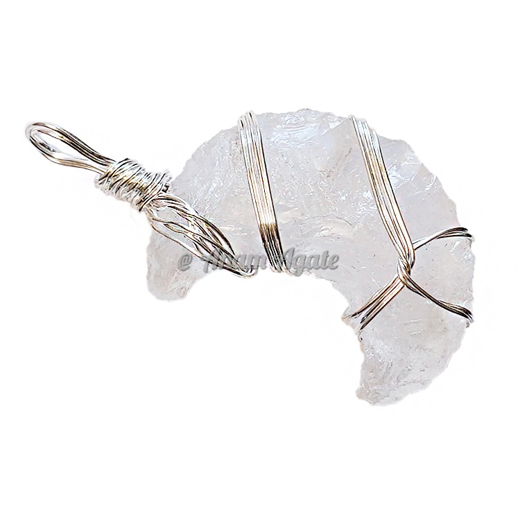 Shop from a wide range of Crystal Quartz Moon Wire Wrapped Healing Pendant B with Anam Agate. It is also employed in many modern technologies to make things like silicon chips for computers, radios and various other man-made devices. Quartz is more valuable when it is completely intact; however, a piece of naturally occurring quartz of unusual color is still worth more and of higher quality than a smooth piece of manufactured plastic or glass designed to imitate quartz. Pendant, in jewelry, ornament suspended from a bracelet, earring, or, especially, a necklace. Pendants are derived from the primitive practice of wearing amulets or talismans around the neck. The practice dates from the Stone Age, when pendants consisted of such objects as teeth, stones, and shells. A gemstone worn as a pendant always gives better result than a ring. Place an order now at Anam Agate. Today Quartz Crystal is used as a crystal oscillator with the Quartz clock being a familiar example of a device using these properties.