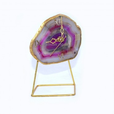 Gold Electroplated Light Green Aventurine Agate Clock with Stand
