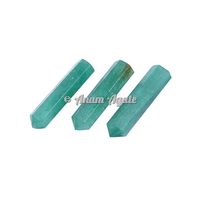 Shop for Green Aventurine Pencil Points from Anam Agate. Green Aventurine is a comforter and heart healer, used to clear and activate the Heart Chakra for general well-being and emotional calm. It is also a powerful protector of the Heart Chakra, providing a shield to block entry from those who would ?tap-in? and use the energy of another. Green Aventurine comforts, harmonizes, protects the heart, and can help attract love later in life. It is one of the premier stones to attract luck, abundance and success. Green Aventurine has a particularly soothing energy behind it and is recommended for working through unresolved emotional issues. It is recommended to wear a green aventurine close to your heart, or on pulse points. A blue aventurine should be placed on the third-eye chakra to aid healing, or under your pillow while you sleep.