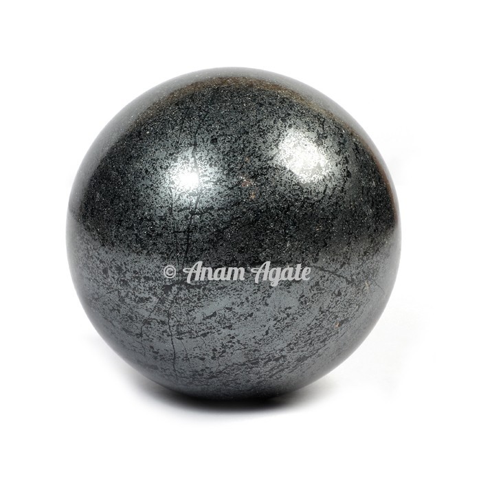 Are you looking for Hematite Ball online at low prices? This Hematite crystal ball decreases negativity and can help balance the body, mind and spirit. Use hematite for divination. Hematite brings you peace from stress, is very calming and a great protection stone. It is also used for restful sleep, physical strength and healing. It also gives you energy, revitalizes and enhances personal magnetism. Hematite helps with original and logical thinking. Physically it has been used to keep the body cool, to decrease blood disorders, nervous problems and insomnia, as well as align the spine and mend broken bones. Hematite harmonizes well with black tourmaline, smoky quartz, obsidian, jet, herkimer diamond, moldavite and ruby. Hematite is associated with the root chakra. We offer hematite spheres which will be vary slightly in size, shape, color and pattern. Buy online now at Anam Agate.