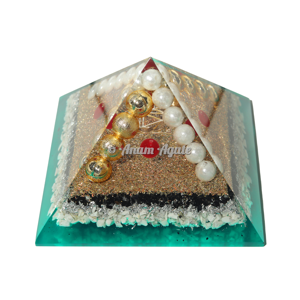 Anam Agate is offering Howlite With Pearls Orgonite Pyramid at low price. Howlite opens and prepares the mind to receive the energies and wisdom of attunements. Howlite is a lovely stone to use when needing to reduce anxiety, tensions and stress. Howlite can be used to facilitate awareness, encourage emotional expression and assist in the elimination of pain, stress and/or rage. Howlite strengthens memory and stimulates desire for knowledge. It teaches patience and helps to eliminate rage, pain and stress. A calming stone, Howlite calms communication, facilitates awareness and encourages emotional expression. Howlite balances calcium levels in the body. Orgonite pyramid helps to filter and balance energy fields in our environment and can aid in strengthening your energy body by converting low frequency energy into a higher frequency that is more beneficial for life forms including yourself, pets and plants.