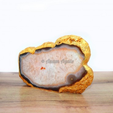 Gold Electroplated Pink Oynx Agate Clock with Stand